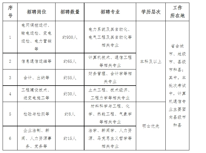 说明:招聘专业均指主修专业,不包含辅修专业及第二学位。最终招聘数量将根据上级单位核定情况相应调整。上述招聘数量含提前批次校园招聘数量。